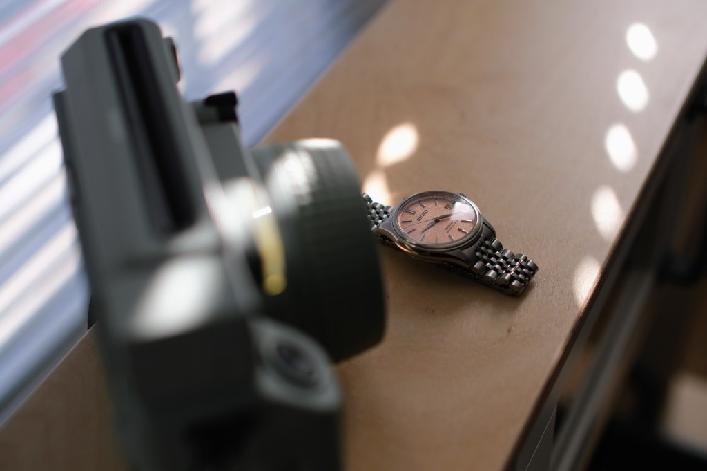 I was recently fortunate enough to go on a family trip to Japan. Of course, I had a nice list of watches to look out for (see my last two articles). However, watch shopping with a 3 year old in tow turned out to be more challenging than I expected. Who knew he would rather play with his Hot Whe.. er, Tomica cars than go store to store looking for watches? I ended up picking up one watch from my original list, on the final day no less. I was in the duty free shops of Narita Airport ready to give up hope when I finally saw it, like a salmon colored flash of lightning. The watch I chose was the SPB467/SARX125, part of the Presage line.