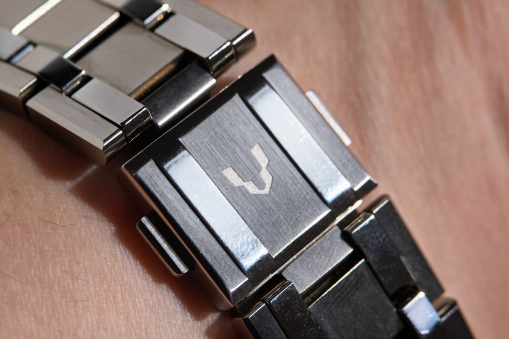 Then there’s the bracelet, and what a bracelet it is. The bracelet is an astonishing collection of angles and facets. Traditional watch bracelets have links that are affixed together with pins or screws. The Divido, on the other hand, still features pins but they are encased inside each link and accessed by a screw. The end result is a bracelet that has links that are akin to being clamped together instead of pinned. The tolerances of the bracelet are so fine, I found the links to actually squeak slightly upon first wear. This has faded, but what hasn’t faded is the feeling of quality on the wrist.