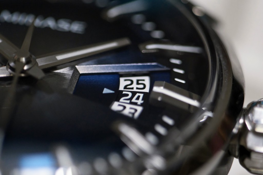 As complex as the case and bracelet are, the dial is nothing to sneeze at either. The Divido features a copper dial with a design that evokes the yukihira hammering pattern. This lets the dial play with light more than a traditional sunray dial would. The logo and hour markers are not applied individually as on a traditional watch; they are actually all part of a singular ring that frames the dial, another unique aspect of modular construction. Then there’s the date window. I would say, in all of watch making, there is nothing more controversial than a date window. If 50% of people dislike a date window and 50% of people like a date window on their watches, I’d say about 90% of everyone hate this style of date window. The kind that shows not only the current date, but also the next and previous dates in sequence. While in most cases I would agree that this is a bit superfluous, I think with Minase watches there is another meaning. In general, this style of date window is used so that the wearer can still see what date it is when the hands are obscuring the current date on the dial. On the Divido I see it as a call back to its parent brands manufacturing heritage. If you have ever seen a CNC machine in action, you know that it uses a drill bit to cut into and remove material with exacting precision. If you remember, Minase’s parent brand Kyowa Co. made its name in the machining industry. With this in mind, you can see how the date window isn’t just a simple punch out in the dial. It looks almost as though they used a drill bit and machined the date window out of a single block of metal.